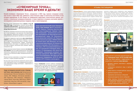 Этот выпуск журнала побил все рекорды – количество страниц превысило сто! Как всегда, осенний номер приурочен к началу очередного высокого сувенирного сезона и подготовке к Новому году. Наш «часовой» ликбез на этот раз посвящен классике деловых подарков – наручным и интерьерным часам, а в других лонгридах наши эксперты подробно осветили темы мерчшопов и трендов в промоиндустрии 2025. Кроме того, на страницах журнала мы рассказали об отраслевых выставках Азиатского региона, прошедших весной 2025 года, представили анонс октябрьской выставки «Реклама», а также пост-релиз нашего проекта «Сувенирная Точка» (март 2025), (следующая ключевая осенняя сессия пройдет с 15 по 26 сентября 2025, не пропустите!).